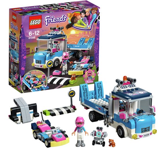 Olivia zawsze jest gotowa uratować swoich wyścigi znajomych dzięki serwisowi LEGO® Friends Service & Care Truck. Opuść rampę i użyj liny i wyciągarki, aby wyciągnąć gokart na lawetę i przewieźć go do warsztatu. Podnieś gokart i sprawdź, czy wszystko jest dobrze pod spodem. Ten szybki zestaw LEGO Friends zawiera także wyrzutnię gokarta, figurkę mini-lalki oraz postacie robota i chomika.