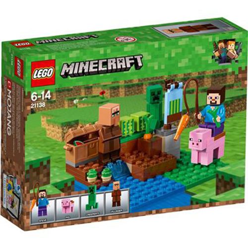 - W zestawie 2 minifigurki LEGO® Minecraft ™: Steve i wieśniak oraz postacie wieprzowe i Creeper ™.