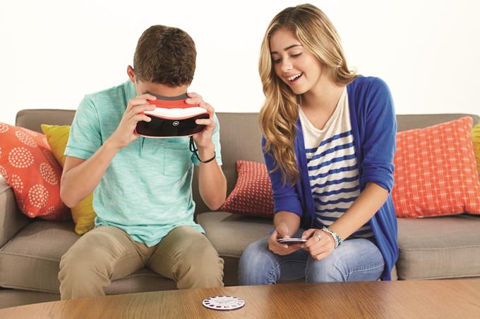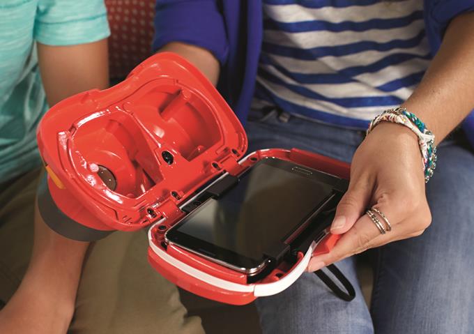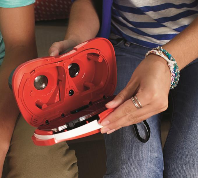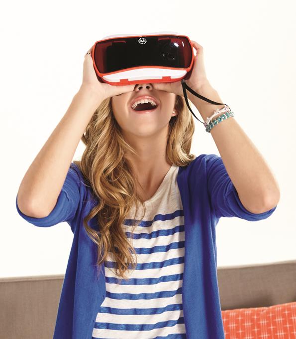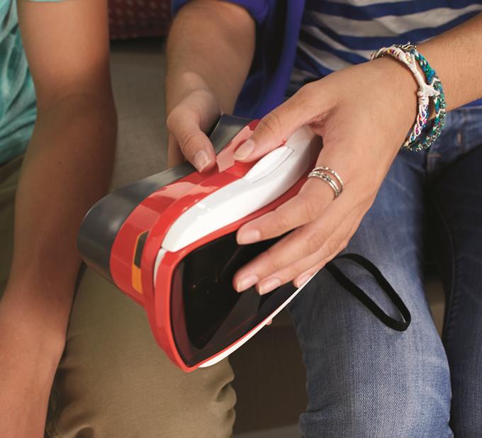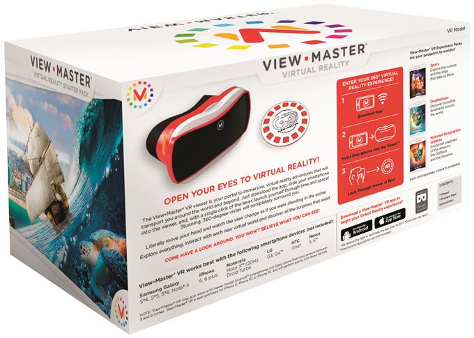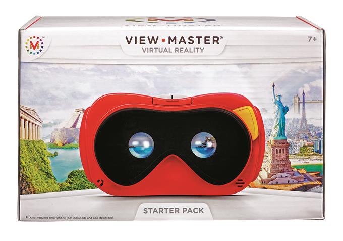 Gogle View-Master® to innowacyjny system, który przeniesie Cię do świata wirtualnej rzeczywistości. Pobierz na zgodnego smartfona (nie znajduje się w zestawie) jedną z bezpłatnych aplikacji View-Master® i zamontuj smartfon w goglach. Spójrz przez nie na krążek z wprowadzeniem i naciśnij dźwignię, aby dokonać wyboru w wyświetlonym menu. Oglądaj filmy i panoramiczne obrazy w zakresie 360 stopni, poznaj ciekawostki i graj w minigry. Dołączony krążek zapewnia dostęp do demonstracyjnych wersji rozszerzeń takich jak Kosmos, Ciekawe miejsca i Dzika przyroda. Zestaw startowy zawiera gogle View-Master®, krążek z wprowadzeniem, adapter do iPhone’a® 5, 5c i 5s oraz przewodnik użytkownika.